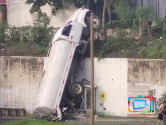 Veracruz, Veracruz a 13 de julio de 2024.- Casi como Transformer quedó grabada la imagen de una pipa después de caer de …
