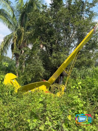 Chacaltianguis, Veracruz a 1 de diciembre de 2025.- Una avioneta amarilla utilizada para labores de fumigación del ingenio San Cristóbal se desplomó …