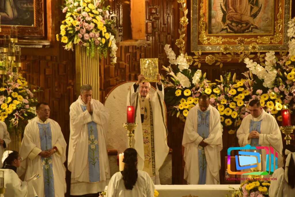 Xalapa, Veracruz a 12 de diciembre de 2025.- En la Basílica Menor de El Dique, el arzobispo de Xalapa Jorge Carlos Patrón Wong ofició la Misa Solemne en el marco de la celebración por los 494 años de las apariciones de la Virgen de Guadalupe a Juan Diego, este 12 de diciembre, siendo una de las tradiciones de fe con mayor arraigo en el país.