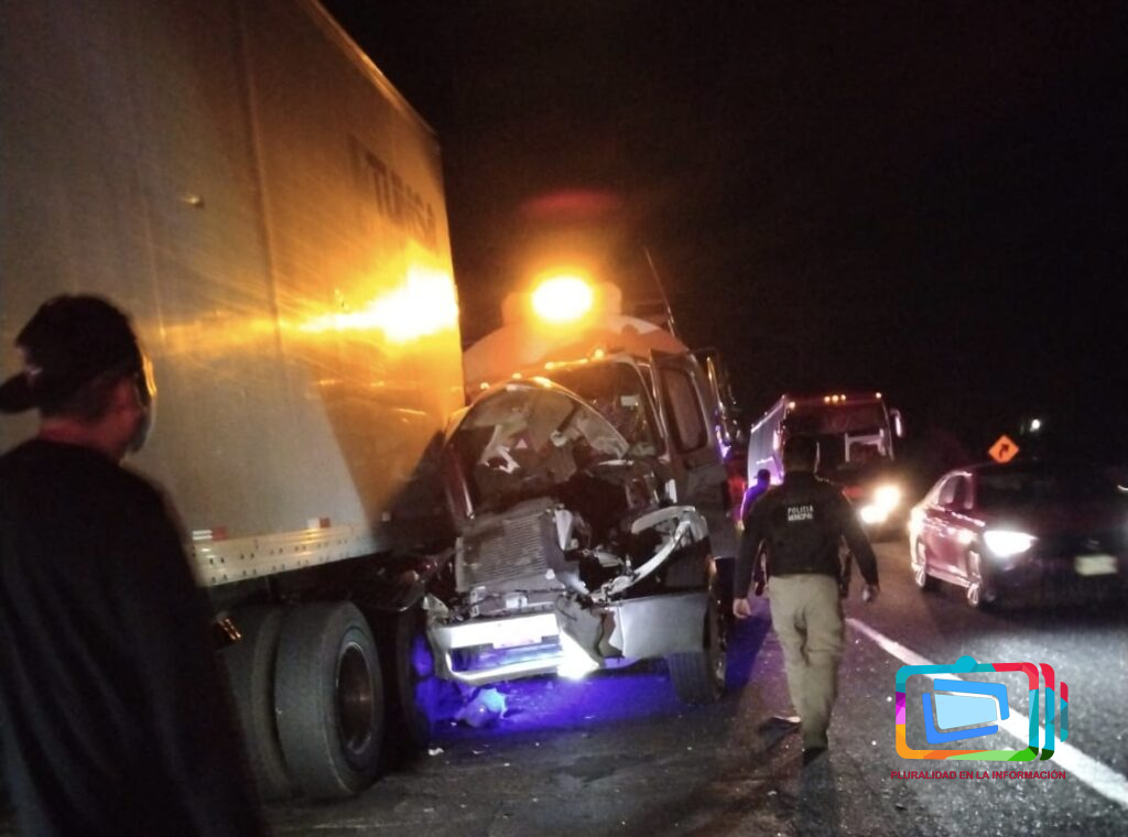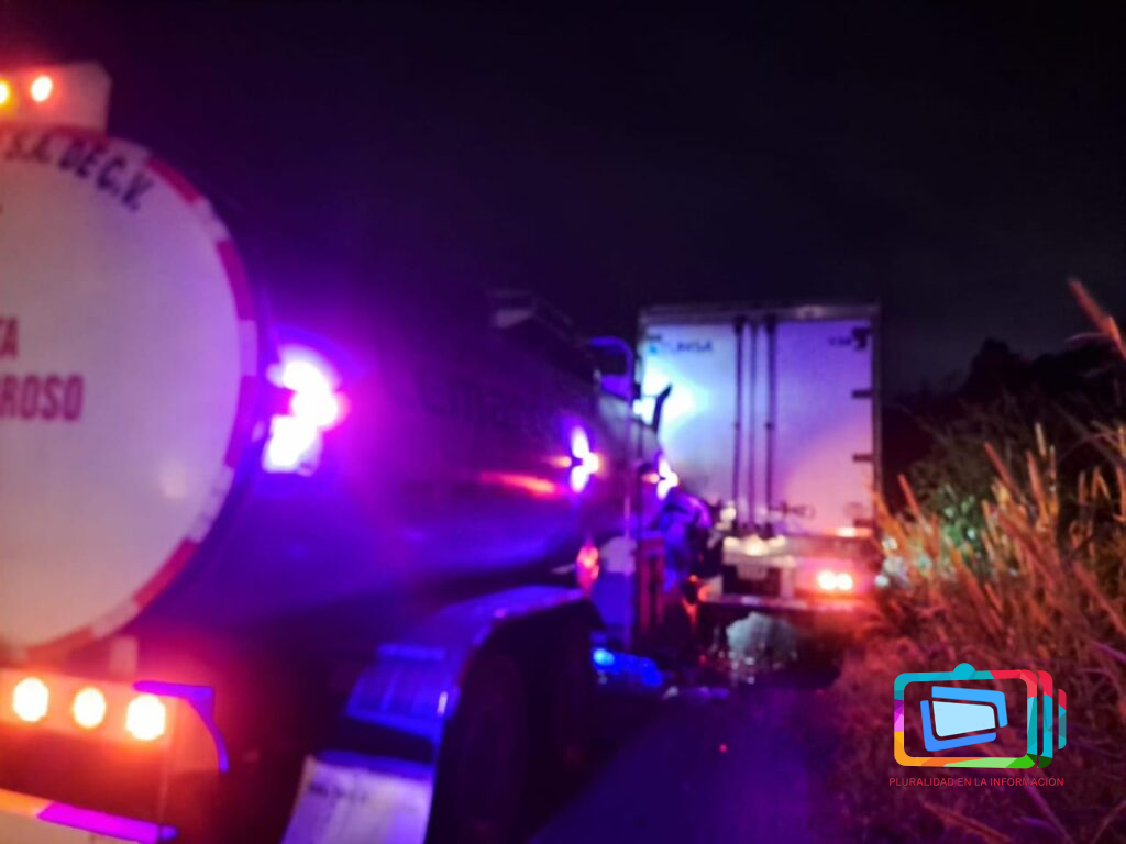 Emiliano Zapata, Veracruz a 20 de diciembre de 2023.- Esta noche a la altura de localidad de Corral Falso del municipio de Emiliano Zapata donde el conductor de una Pipa (Salchicha) chocó contra la parte trasera de otro trailer.