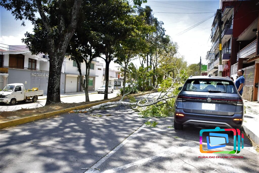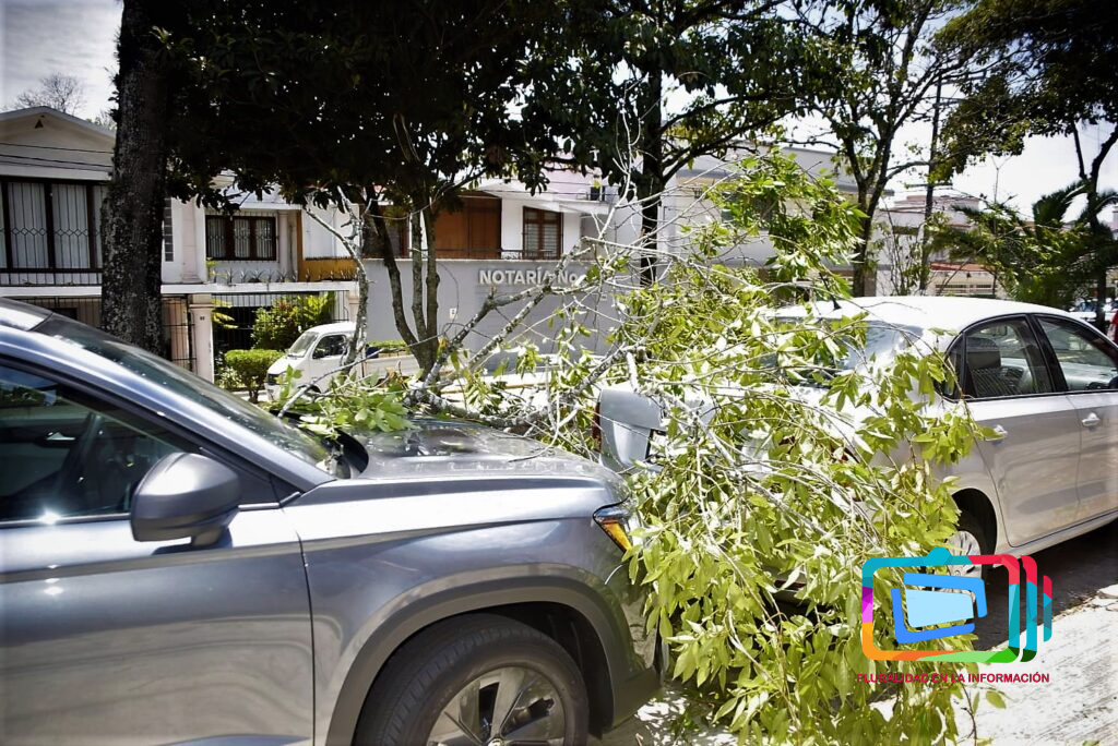 - Calle Araucarias: Una rama de gran tamaño se desprendió y golpeó a dos vehículos que se encontraban estacionados; hasta el momento solo se reportan daños materiales.