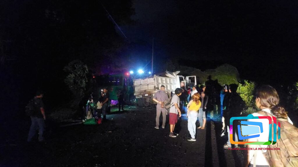 Coatepec, Veracruz a 27 de agosto de 2025.- La noche de este miércoles se registró un fuerte accidente en la carretera Xalapa–Totutla, a la altura del tramo entre Tuzamapan municipio de coatepec y la entrada a Jalcomulco, donde un autobús de la línea Azteca se impactó contra un camión de volteo.