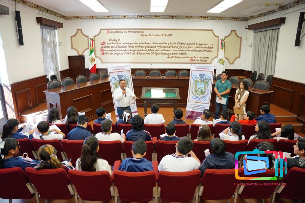 Xalapa, Ver., 27 de febrero de 2026.- En cercanía, con respeto y aprendizaje mutuo, el Ayuntamiento de Xalapa realizó la Jornada Cívica: Memoria y Ciudadanía. Patrimonio y Gobierno Municipal, un ejercicio formativo que permitió a niñas y niños de la Escuela Primaria Hugo Topf conocer de cerca el funcionamiento del gobierno municipal y, sobre todo, dialogar directamente con sus autoridades.