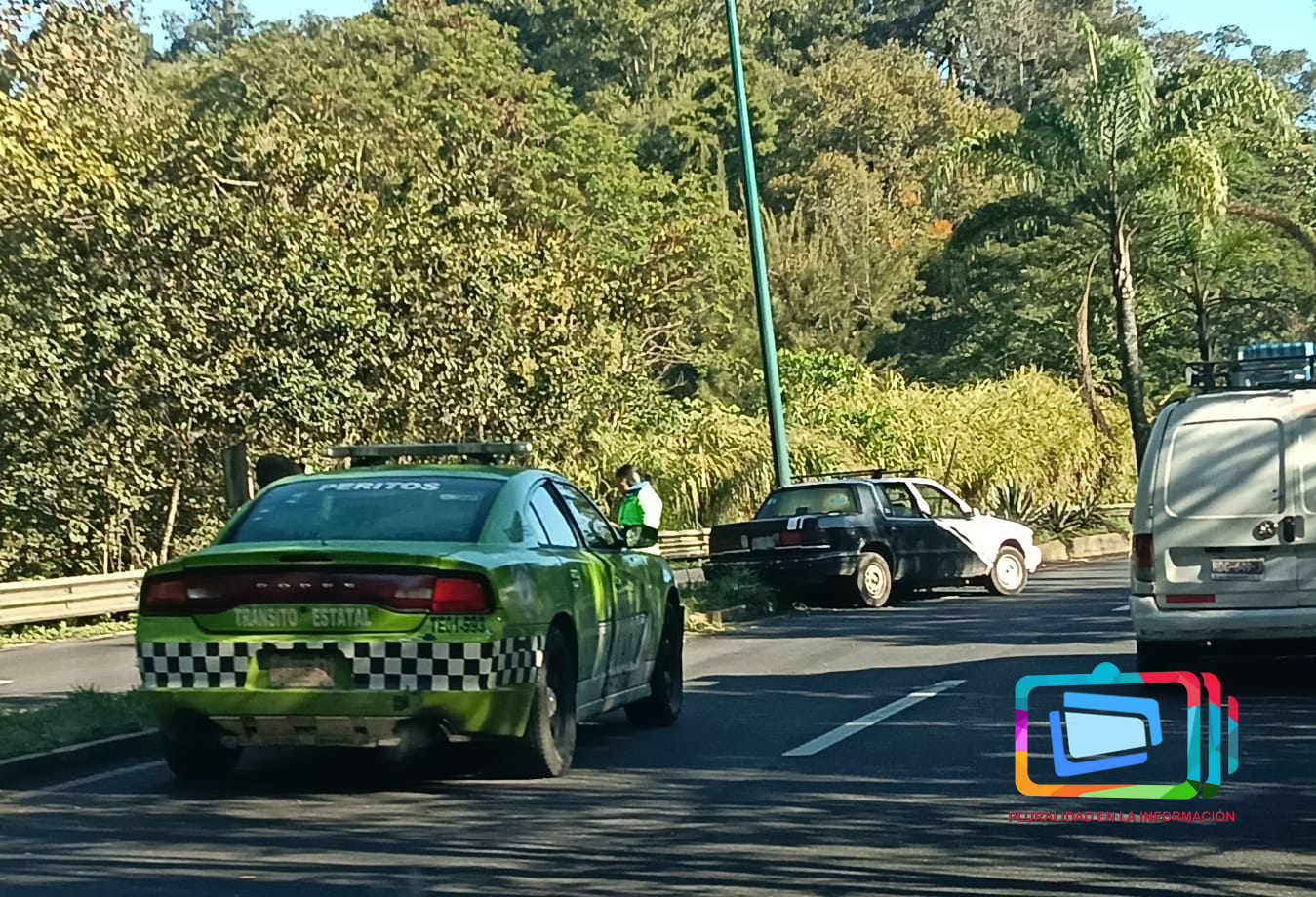 Auto termina montado en el camellon vial de la Xalapa-Coatepec