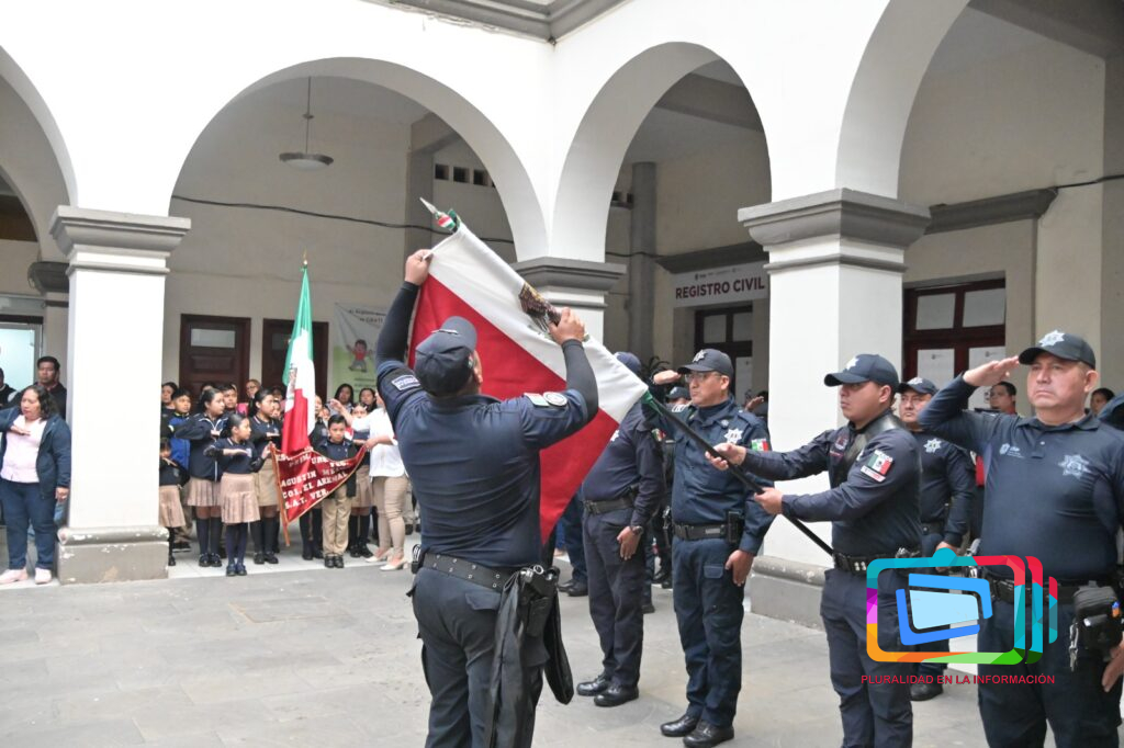 Acompañados de trabajadores municipales, así como alumnos y maestros de instituciones educativas de la ciudad, rindieron homenaje al máximo lábaro patrio del país, que representa la historia e identidad de las y los mexicanos.