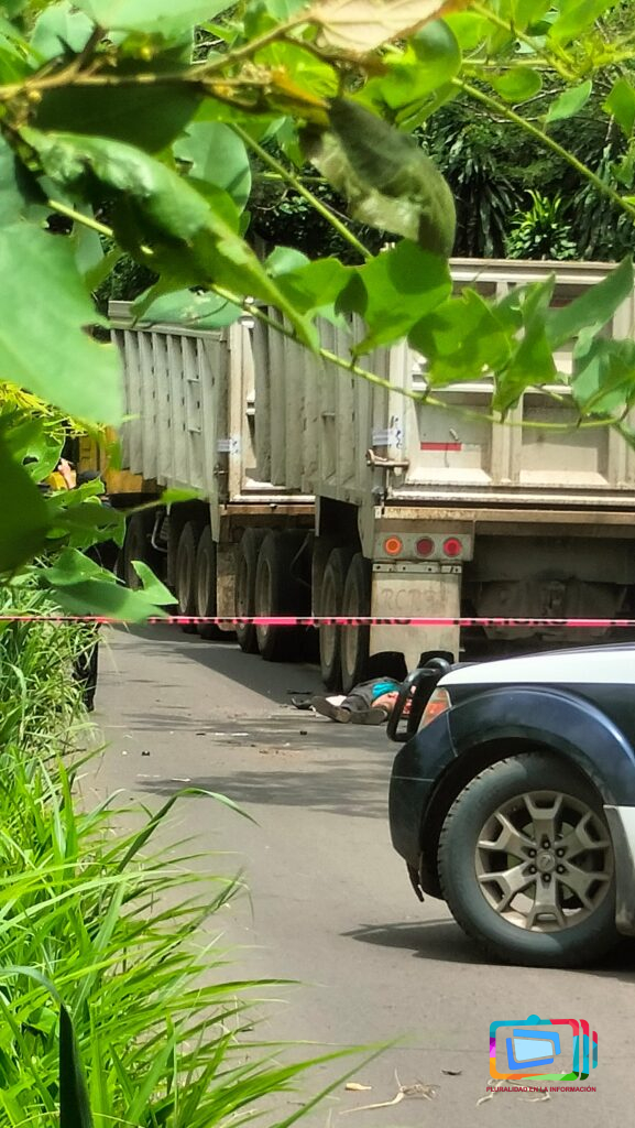San Andres Tuxtla, Veracruz a 12 de agosto de 2024.- Una persona falleció al ser arrollada entre las ruedas de una góndola en la localidad de Tilapan, cuando el camión invadió carril al circular en el camino estatal San Andrés Tuxtla-Tilapan para transportar material pétreo del proyecto del tren maya hasta el sur del país.