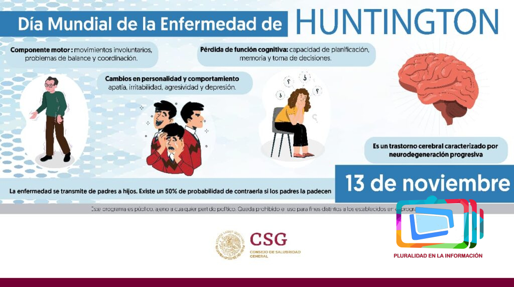 Xalapa, Veracruz a 13 de noviembre de 2025.- Cada 13 de noviembre se conmemora el Día Internacional de la Enfermedad de Huntington, fecha establecida para sensibilizar a la población sobre este padecimiento neurodegenerativo y reconocer los avances científicos y médicos alcanzados en su diagnóstico y tratamiento.