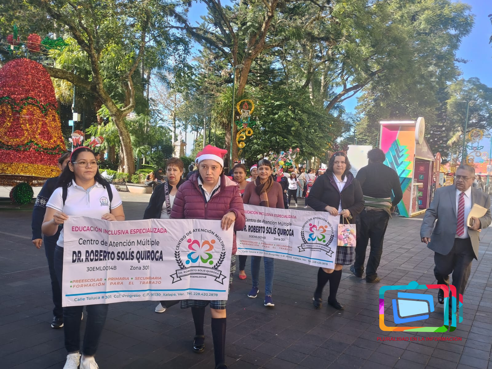 Xalapa, Veracruz a 9 de diciembre de 2024.- Con la finalidad de obtener recursos para mejorar las condiciones de este plantel los alumnos y maestros del Centro de Atención Múltiple “Dr. Roberto Solís Quiroga” de Xalapa acudieron al palacio municipal de Xalapa a cantar la tradicional «rama».