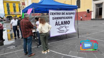 Habitantes de Álamo en Xalapa organizan centro de acopio para apoyar a damnificados por inundaciones.