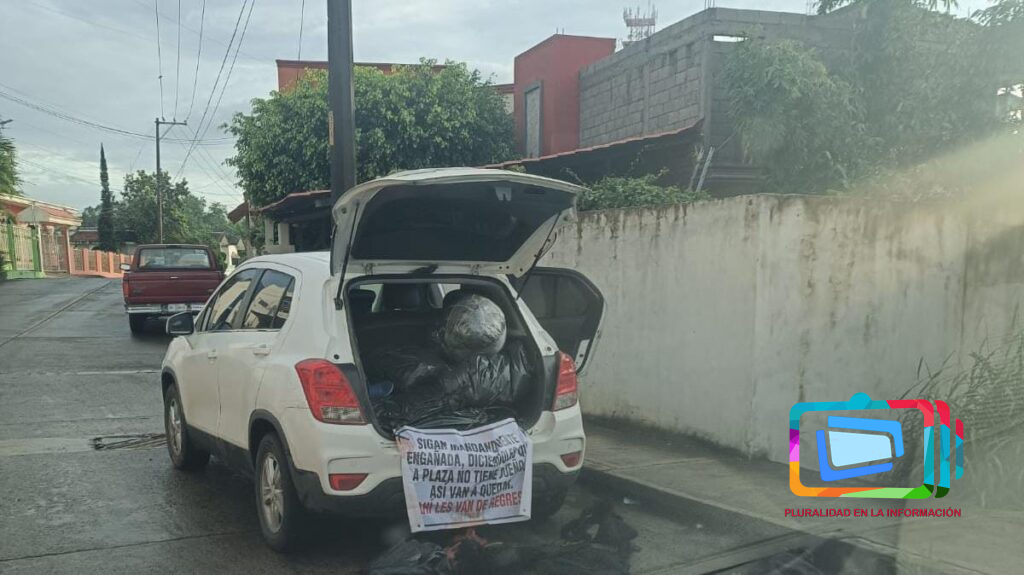 Junto a los cuerpos, fueron localizados chalecos tácticos y una lona con un mensaje amenazante presuntamente firmado por un grupo delictivo lo que generó psicosis entre automovilistas, peatones, comerciantes y vecinos de la zona que asombrados admiraban el dantesco momento.