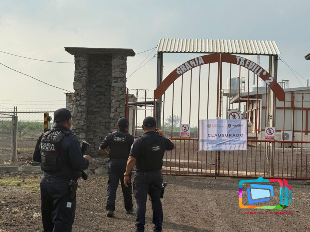 Durante el operativo, funcionarios municipales explicaron que la clausura se realizó como parte de un procedimiento administrativo derivado de la falta de documentos que acreditaran el funcionamiento legal de las granjas.