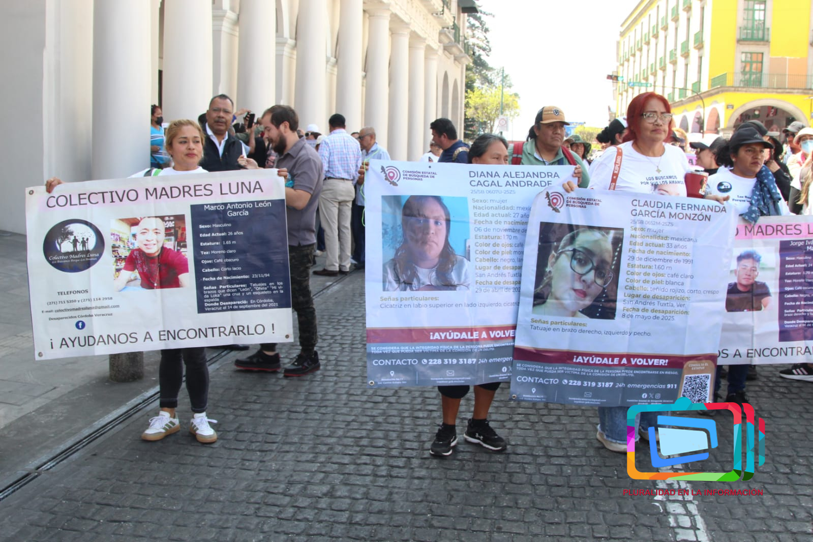 Xalapa, Veracruz a 2 de marzo de 2026.- Integrantes del colectivo Luz, Fuerza y Lucha por Nuestros Desaparecidos, con presencia en Xalapa y Córdoba, se manifestaron este día en la zona centro para denunciar la reducción de apoyos económicos por parte de la Comisión Estatal de Atención a Víctimas y exigir una reunión directa con la gobernadora del estado.