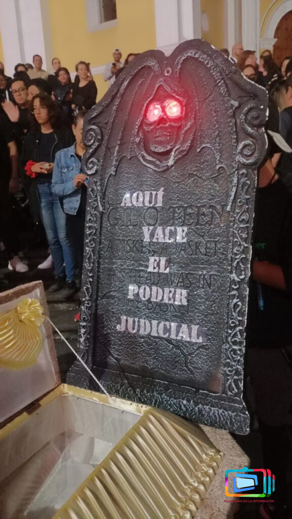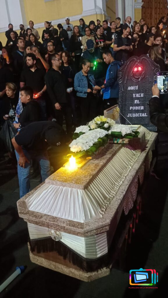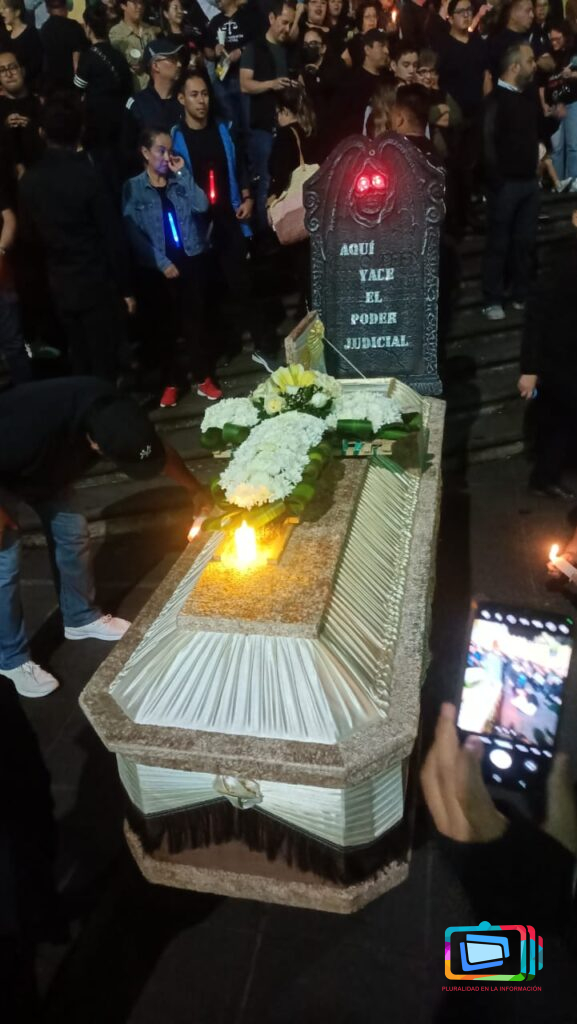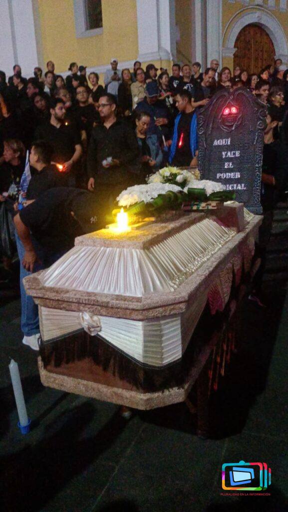Finalmente cabe señalar que durante la manifestación colocaron al frente un féretro al cual pusieron velas y veladoras, con una lápida donde se leía «Aquí yace el Poder Judicial».