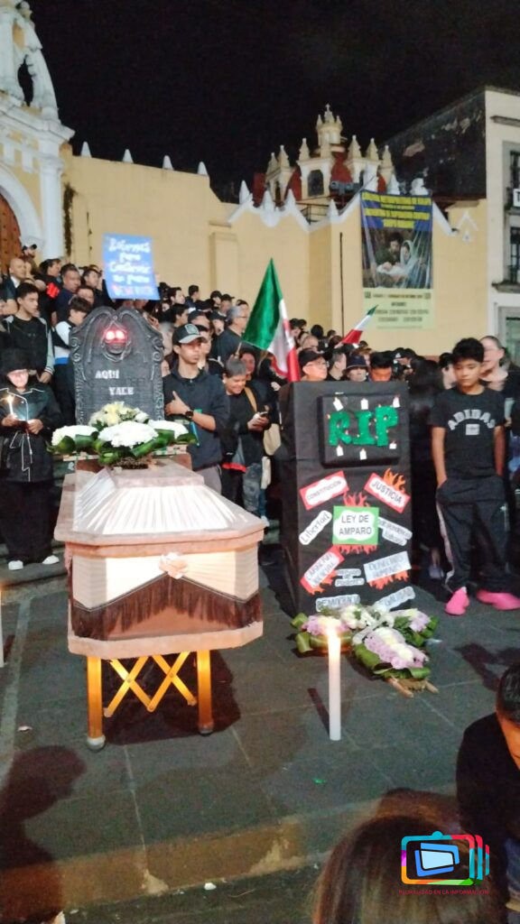 Colocan un féretro durante la manifestación para decir a la sociedad que ahí yace dicha soberanía