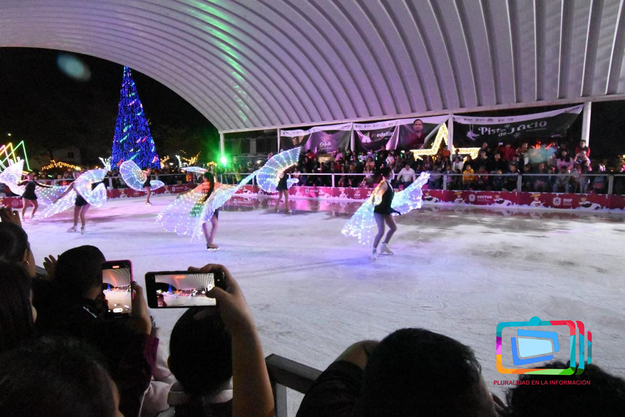 Xalapa, Veracruz a 17 de diciembre de 2023.- Con un impresionante y colorido espectáculo de patinaje artístico fue inaugurada esta noche la novedosa pista de hielo que el gobierno de Marcos Isleño Andrade instaló como atractivo principal de la Villa Mágica Navideña que desde hace diez días se exhibe con gran éxito en el fraccionamiento Arboledas San Ramón.