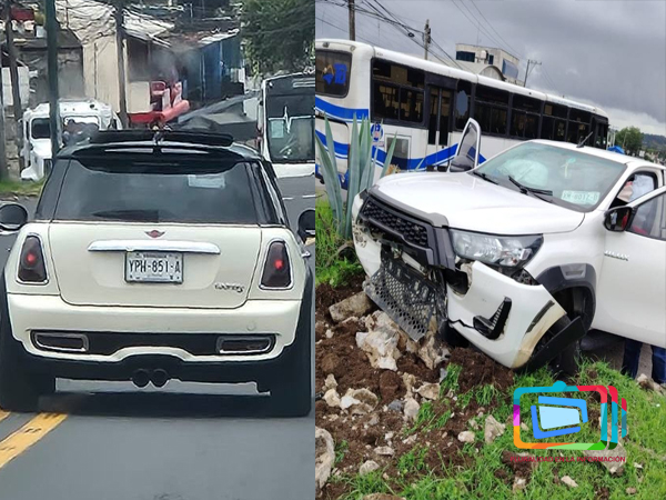 Banderilla, Veracruz a 27 de julio de 2025.- Conductor de un Mini Cooper con placas YPH-851-A chocó contra una camioneta Hilux en la carretera federal 140 a la altura de la colonia 3 de Mayo del municipio de Banderilla.