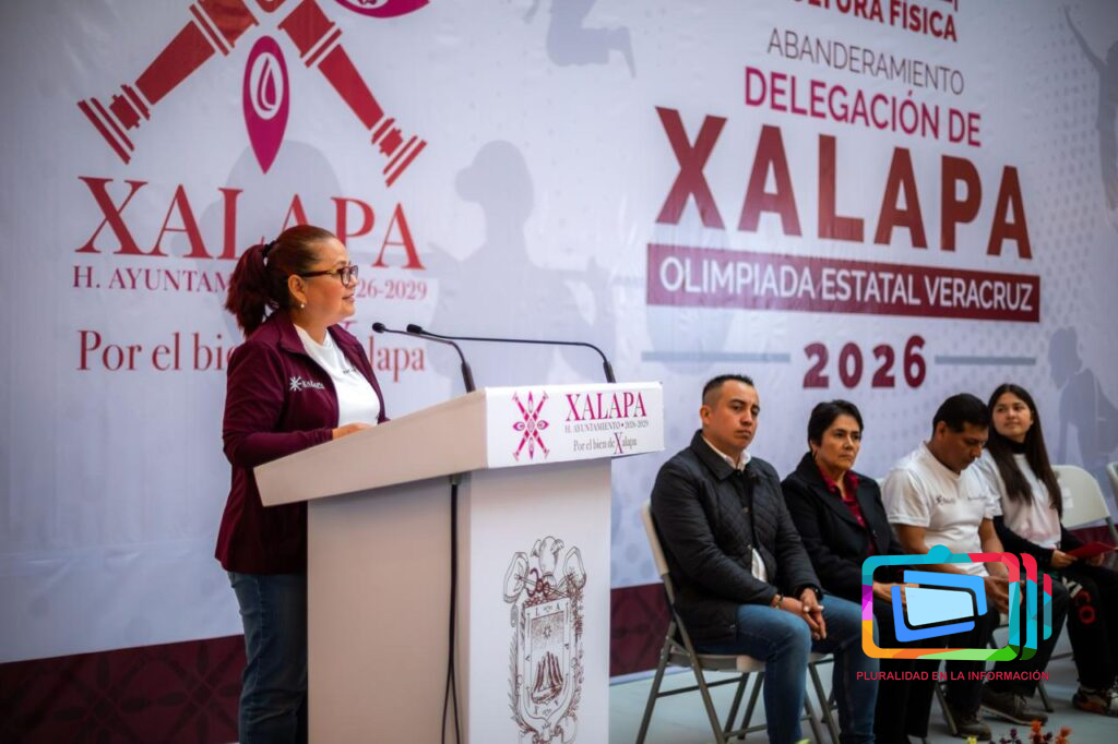Xalapa, Ver., 11 de febrero de 2026.- “En el Gobierno Municipal creemos que el deporte es una herramienta fundamental para transformar a nuestra sociedad, ya que aleja de la violencia y genera proyectos de vida positivos”, destacó la Alcaldesa, Lic. Daniela Griego Ceballos, durante la ceremonia de abanderamiento de la Delegación de Xalapa que participará en la Olimpiada Estatal Veracruz 2026.