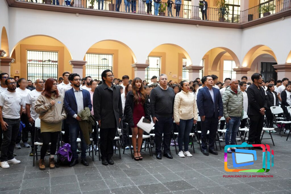 En el acto también estuvieron presentes el entrenador de levantamiento de pesas Luis Tapia Arizmendi, titulares de las Direcciones Municipales, así como estudiantes de la Escuela Secundaria Experimental, quienes realizaron los honores a la bandera.