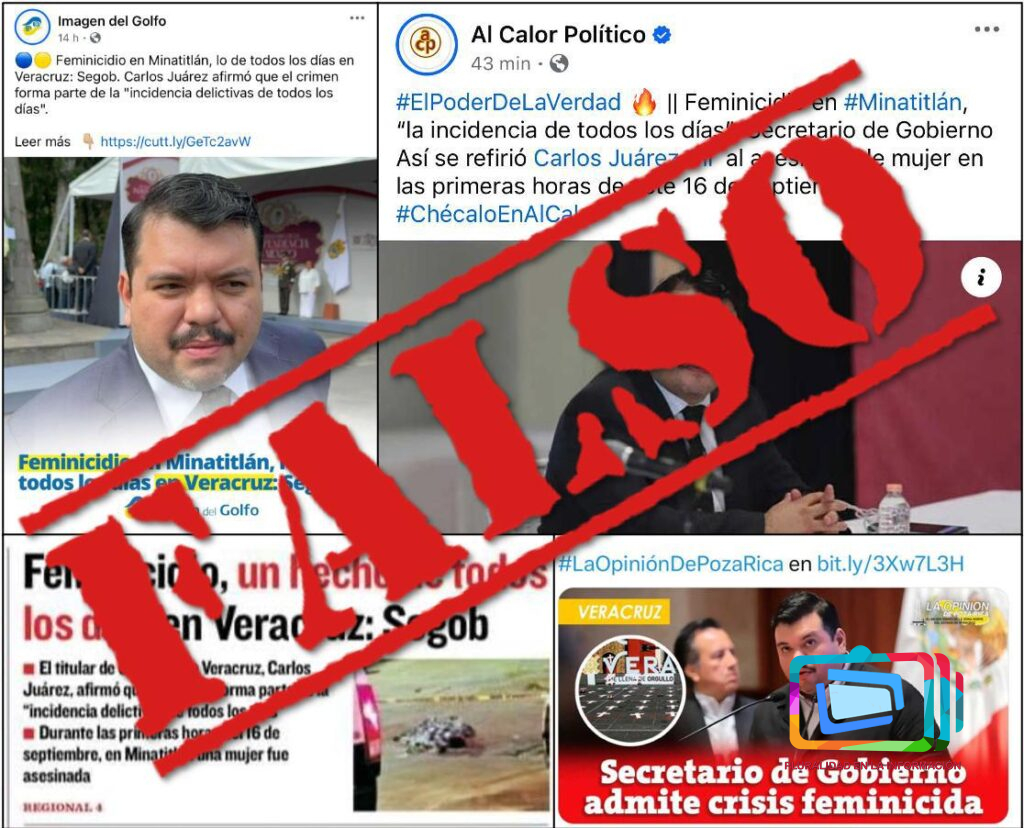 Respecto a la información difundida por algunos medios sobre un supuesto “reconocimiento de feminicidios en el estado como una incidencia de todos los días” por parte del Secretario de Gobierno, la dependencia aclaró que dicha información es completamente FALSA.