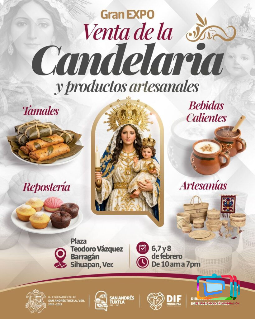 San Andrés Tuxtla, Ver., 5 de febrero de 2026.- Del 6 al 8 de febrero se celebrará en San Andrés Tuxtla la Gran Expo- Venta de la Candelaria y productos artesanales en la Plaza Teodoro Vázquez Barragán de la comunidad de Sihuapan.