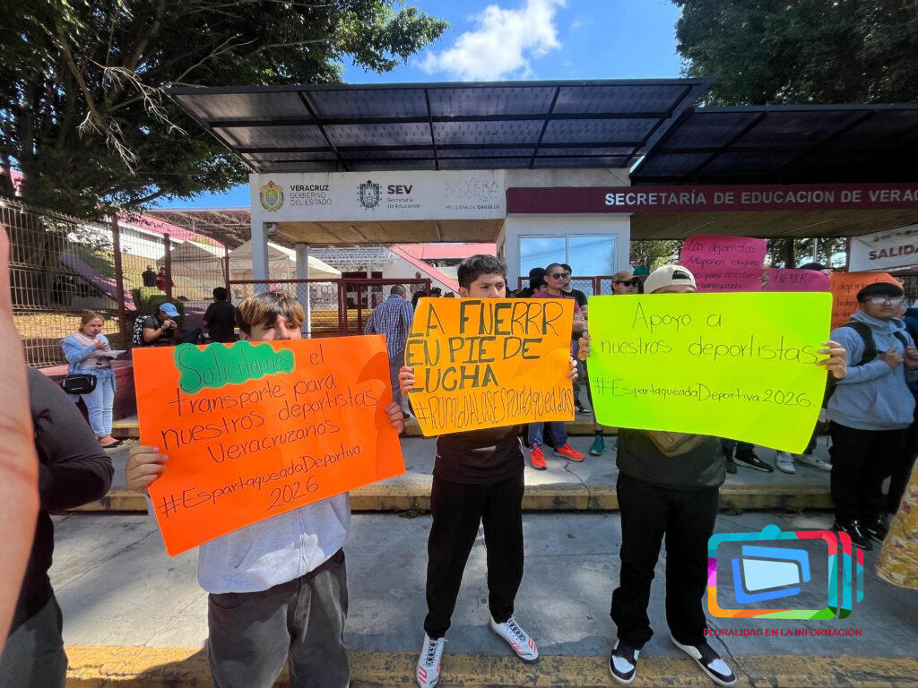 Xalapa, Veracruz a 4 de marzo de 2026.- Un grupo de estudiantes y deportistas veracruzanos, encabezados por Samuel Díaz Rosas, responsable estudiantil de Antorcha, solicitó el apoyo del Gobierno del Estado para cubrir el transporte que les permita asistir a la Espartaqueada Deportiva Nacional, que se realizará del 7 al 14 de marzo en Tecomatlán, Puebla.