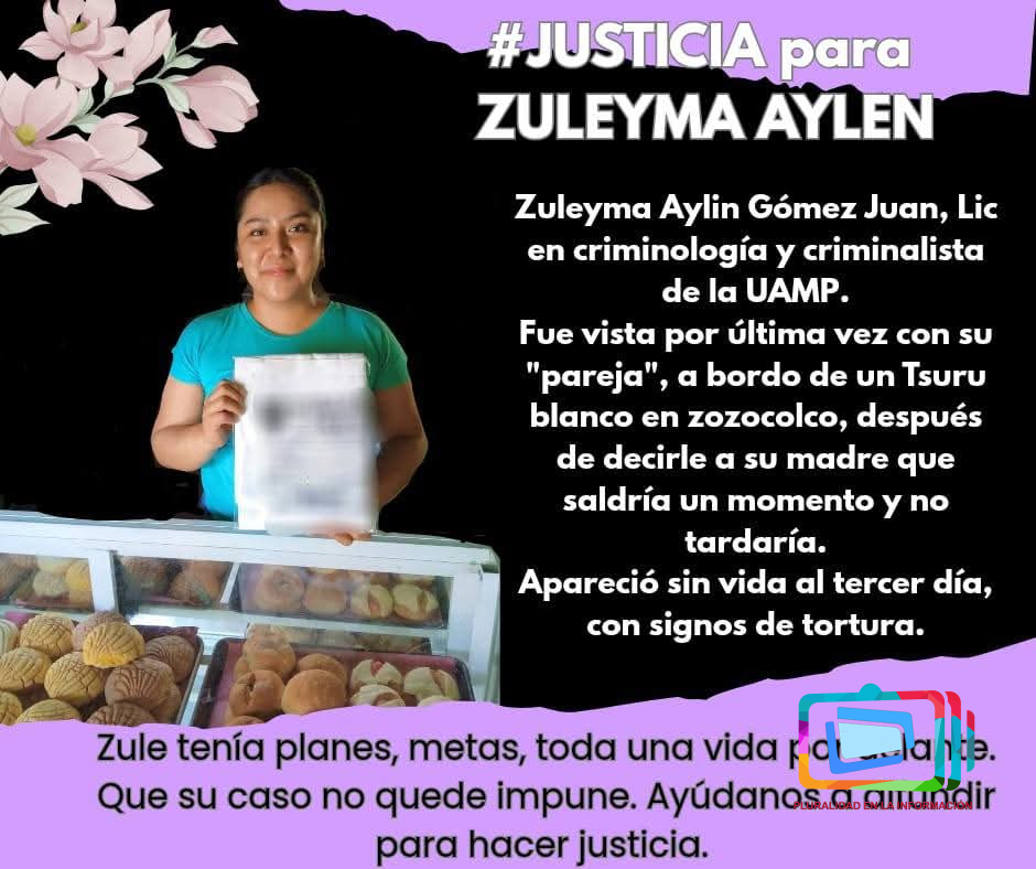 Zuleyma era originaria del pueblo de Coxquihui, en la sierra totonaca del norte de Veracruz, y había egresado de la carrera de Criminología. Sus allegados cuestionan el actuar de las autoridades, señalando que las investigaciones solo avanzan cuando existe presión social.