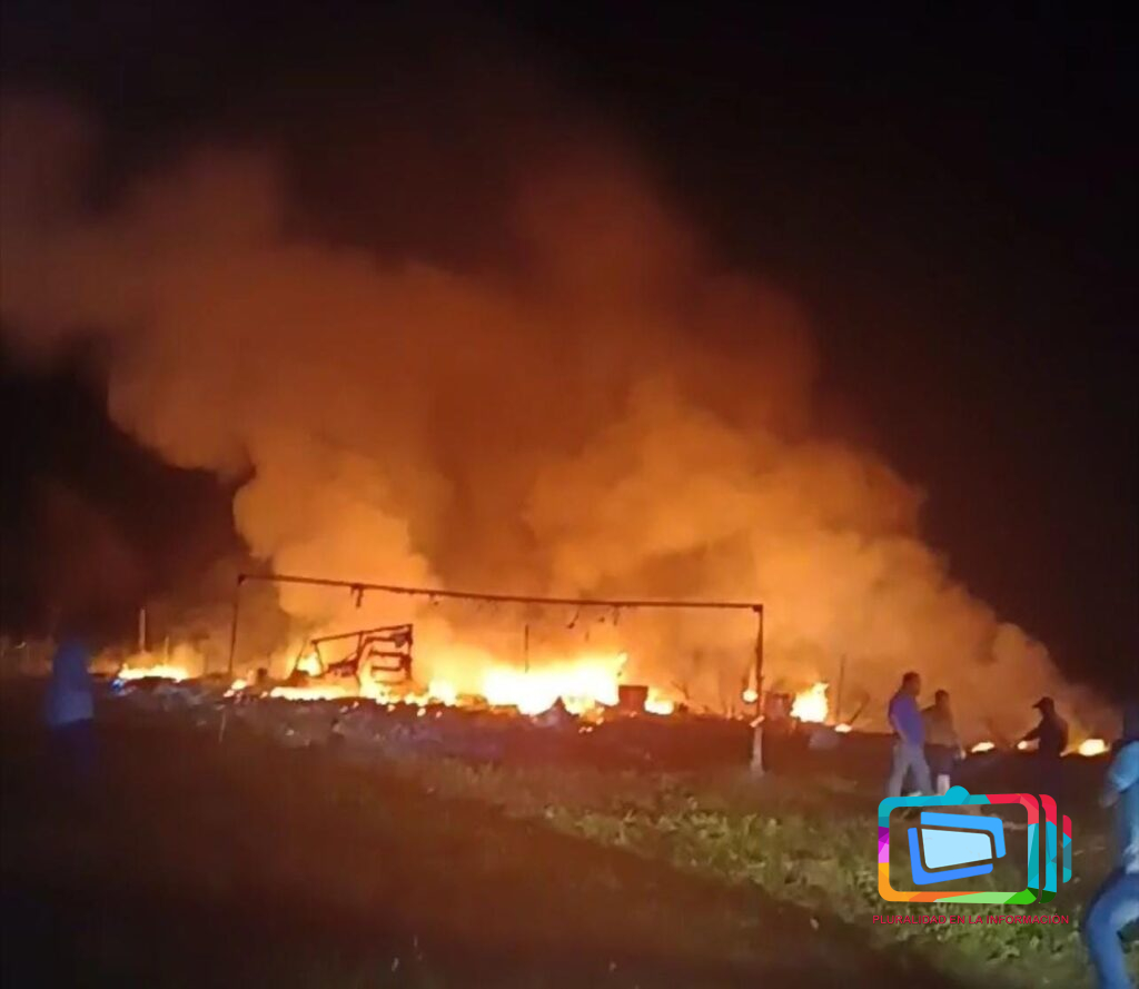 Isla, Veracruz a 6 de diciembre de 2024.- La noche del jueves en Isla, ocurrió una explosión en los puestos de pirotecnia ubicados en el conocido campo de los pulido.