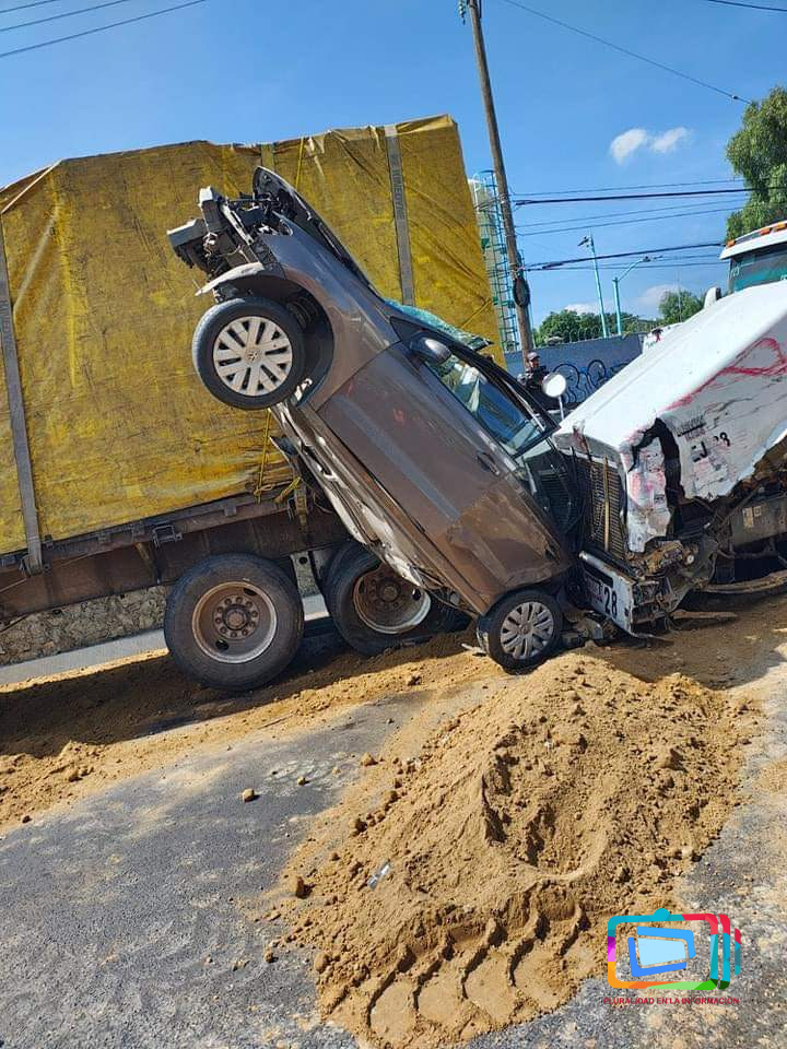 Un tráiler se quedó sin frenos e impactó con varios vehículos prensando uno de ellos con personas atrapadas al interior. Se habla de al menos 10 lesionados.