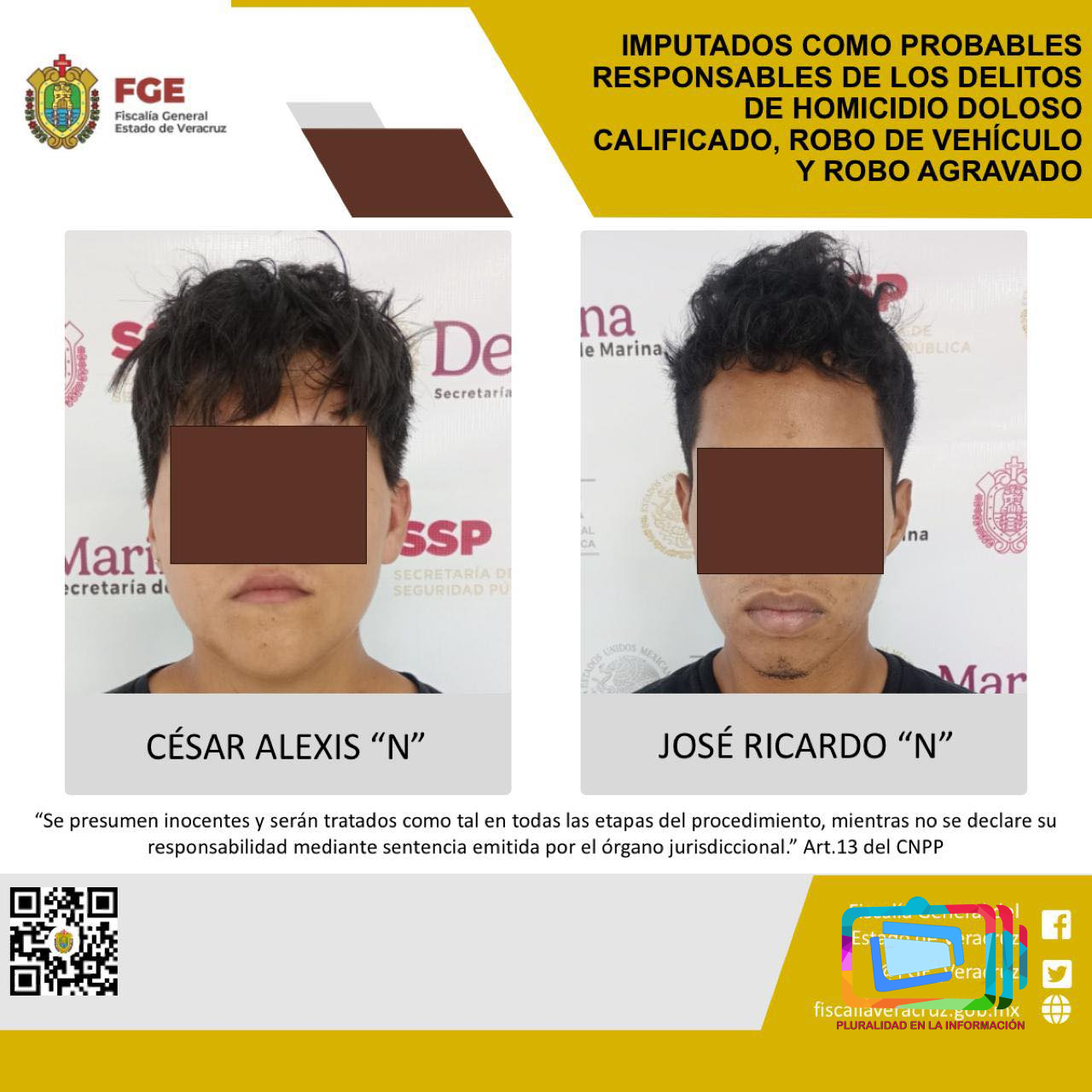 A través de la Fiscalía Regional Veracruz se realizó la imputación como probables responsables de los delitos de homicidio doloso calificado, robo de vehículo y robo agravado, en agravio de la víctima identificada con las iniciales R.R.R., de quien abusaron de su confianza para presuntamente cometer los delitos mencionados.