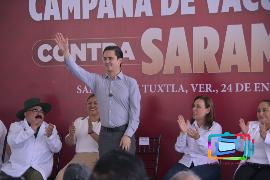 San Andrés Tuxtla, Ver., 24 de enero de 2026.- En un acto de total coordinación entre el Ayuntamiento de San Andrés Tuxtla y el Gobierno del Estado que encabeza la Ingeniera, Rocío Nahle García, arrancó en la ciudad, la campaña estatal de vacunación contra el Sarampión.