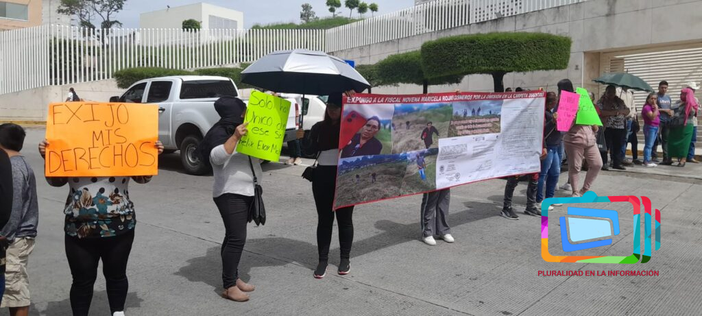 Xalapa, Veracruz a 9 de julio de 2025.- Esta mañana, un grupo de personas se manifestaron frente a las instalaciones de la Fiscalía General del Estado (FGE), ubicadas en Arco Sur, para exigir justicia en un caso de invasión de terrenos que lleva más de siete años sin resolverse.