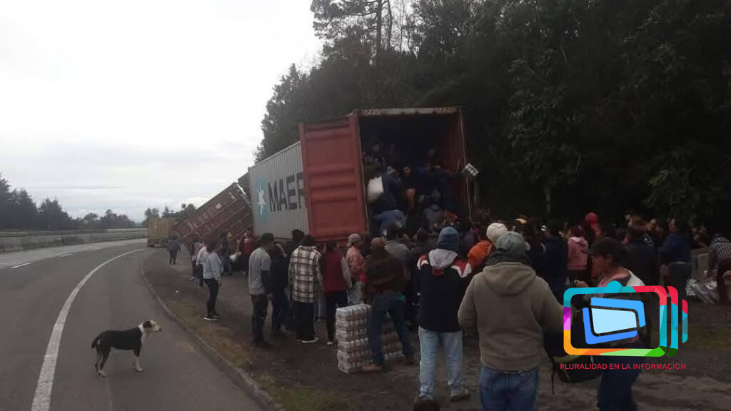 Tlacolulan, Veracruz a 24 de enero de 2025.- Se reporta volcadura en la carretera Xalapa-Perote a la altura de El Fresno, un tráiler de doble contenedor los habitantes que ya están al asecho sin importar la vida del chofer en recibir ayuda, mas que el día de hoy era un contenedor iba cargado con cerveza.