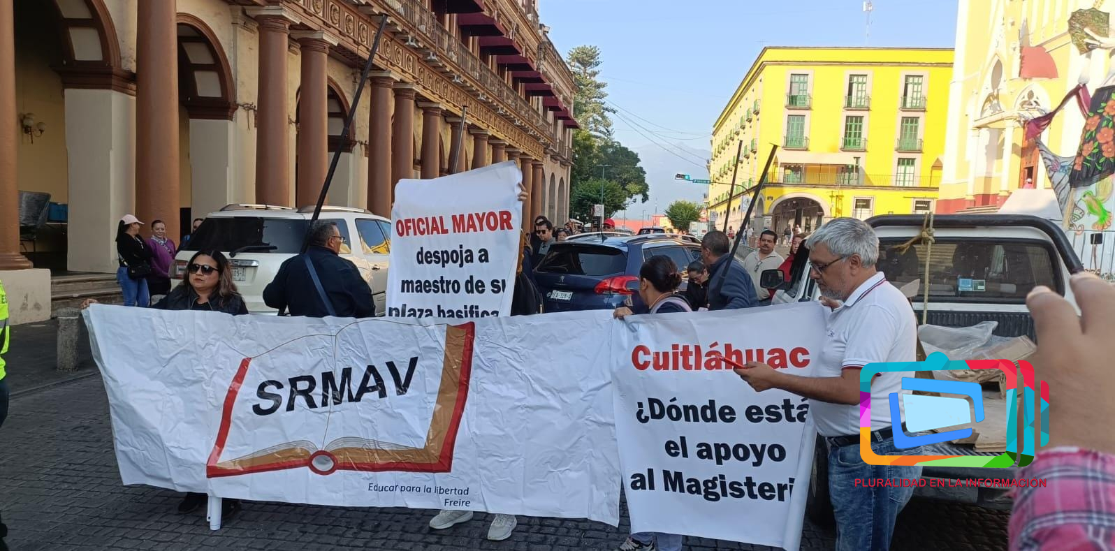 Integrantes del SRMAV se manifestaron para denunciar que la SEV le robo la plaza a uno de sus agremiados