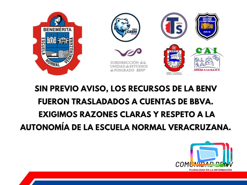 La alarma se encendió cuando las autoridades de la Normal intentaron realizar los pagos a personal eventual, pero las cuentas institucionales no tenían los fondos disponibles y luego de una revisión, se descubrió que la SEV había cambiado de manera unilateral la administración de las cuentas a otra institución bancaria, absorbiendo el control de los recursos que la propia BENV genera a través de inscripciones a licenciaturas, maestrías y doctorados.