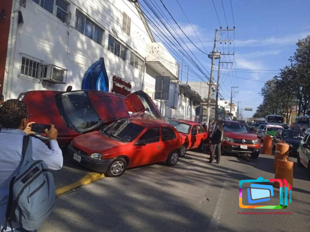 De acuerdo con los primeros reportes, una camioneta Nissan X-Trail impactó contra tres vehículos más: una Renault Duster, un Nissan Tsuru y un Chevrolet Chevy, todos de color rojo. La conductora de la X-Trail fue identificada como empleada de las oficinas de CAEV.