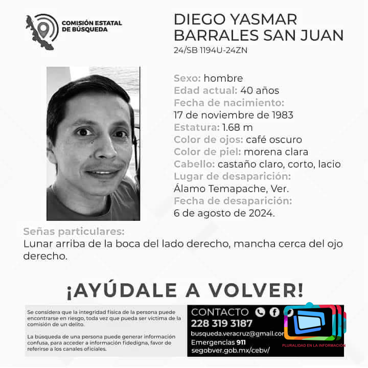 Álamo Temapache, Veracruz a 9 de agosto de 2024.- Lamentablemente el cuerpo de Diego Yasmar Barrales San Juan, maestro de telebachillerato desparecido en Álamo Temapache fue encontrado sin vida en la localidad Cinco Poblados, en ese municipio.