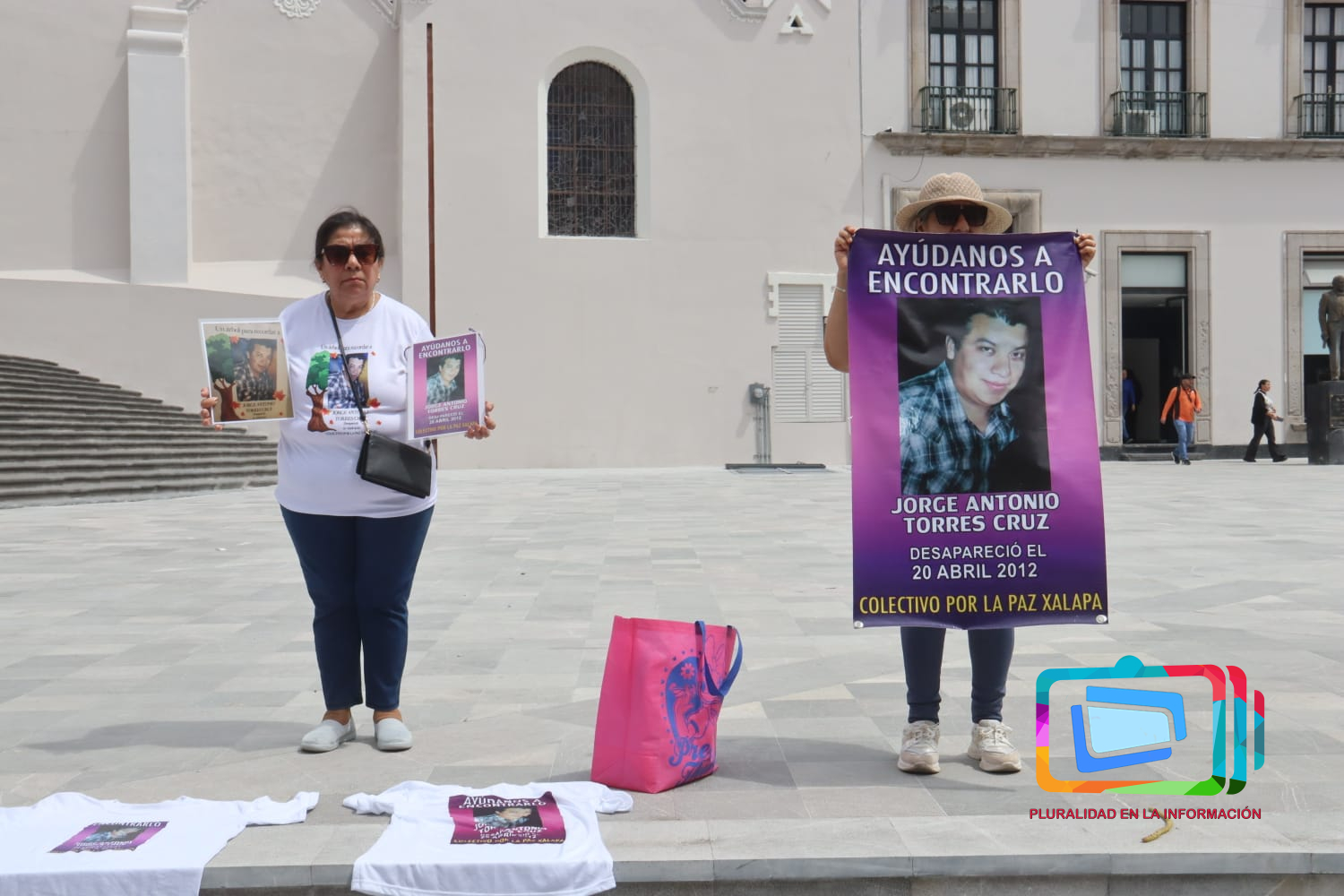 Madre se manifestó en la plaza Lerdo, denuncia 14 años sin avances en desaparición de su hijo en Veracruz.