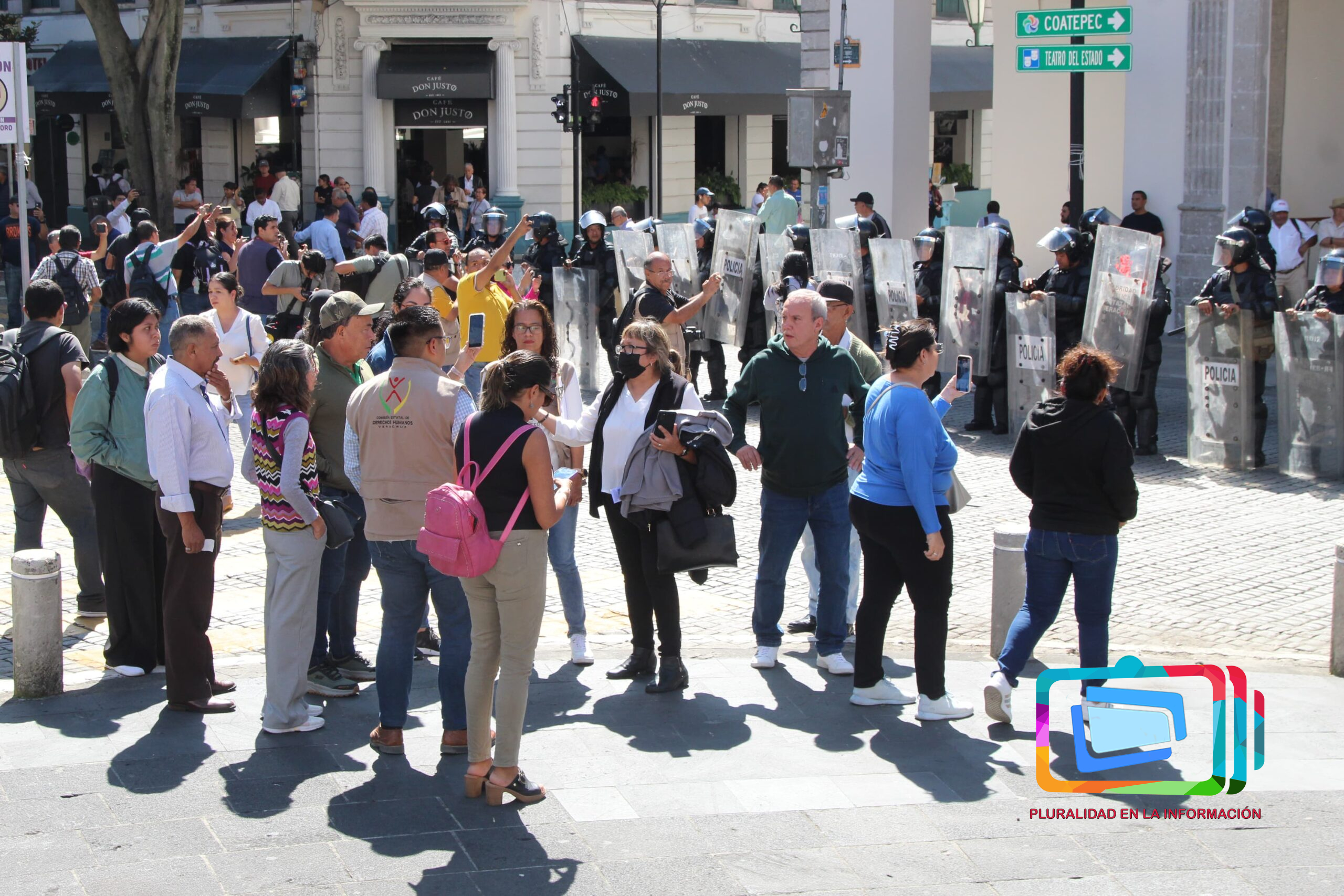 Xalapa, Veracruz a 3 de octubre de 2025.- Maestros jubilados de distintos municipios del estado fueron desalojados por granaderos de la Secretaría de Seguridad Pública mientras exigían el pago del seguro institucional, los docentes habían montado un plantón en la calle Enríquez desde el jueves pasado para demandar una respuesta definitiva a sus peticiones, ya que llevan más de 15 años luchando por el pago de esta prestación.