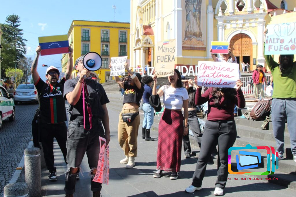 Por un lado, en la Plaza Lerdo, integrantes de diversos colectivos realizaron una protesta para repudiar lo que calificaron como una invasión del gobierno de Estados Unidos a la República Bolivariana de Venezuela.