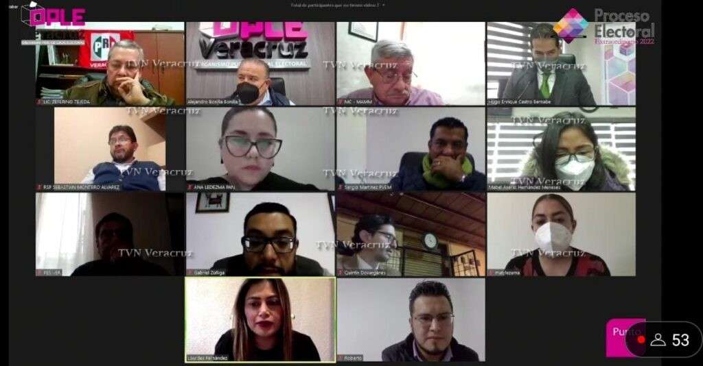 Xalapa, Ver., a 04 de febrero de 2022. Durante la Sesión Extraordinaria Urgente, el Consejo General del Organismo Público Local Electoral del Estado de Veracruz (OPLE), a propuesta de la Comisión de Organización y Capacitación Electoral, aprobó la modalidad, sedes, fechas y horarios, así como la lista de aspirantes que una vez acreditado el cumplimiento de requisitos legales, accederán a la etapa de valoración curricular y entrevista, derivado de la Convocatoria para quienes aspiran a ocupar los cargos de Presidencia del Consejo, Consejerías Electorales, Secretaría, Vocalía de Organización Electoral y Vocalía de Capacitación Electoral de los Consejos Municipales de Jesús Carranza, Chiconamel, Amatitlán y Tlacotepec de Mejía para el Proceso Electoral Local Extraordinario 2022.