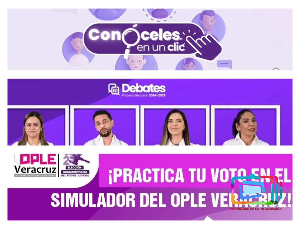 En cuanto al Proceso Electoral Local Extraordinario 2024-2025 para la elección de personas juzgadoras, el OPLE Veracruz cuenta con el Micrositio “Conóceles” en https://conocelesjudicial2025.oplever.org.mx/, para difundir la identidad, perfil e información curricular de las personas candidatas a cargos de elección del Poder Judicial del Estado. El objetivo de esta herramienta es facilitar el acceso a la información y su consulta, lo que permitirá a la población contar con elementos para la emisión de un voto informado e incentivar su participación en el proceso de elección.