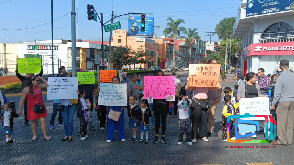 Xalapa, Veracruz a 10 de marzo de 2026.- Padres de familia del Jardín de Niños Morelos realizaron un bloqueo la mañana de este martes para exigir a las autoridades educativas que concluyan las obras de rehabilitación del plantel, las cuales aseguran debieron terminar desde hace varios meses.