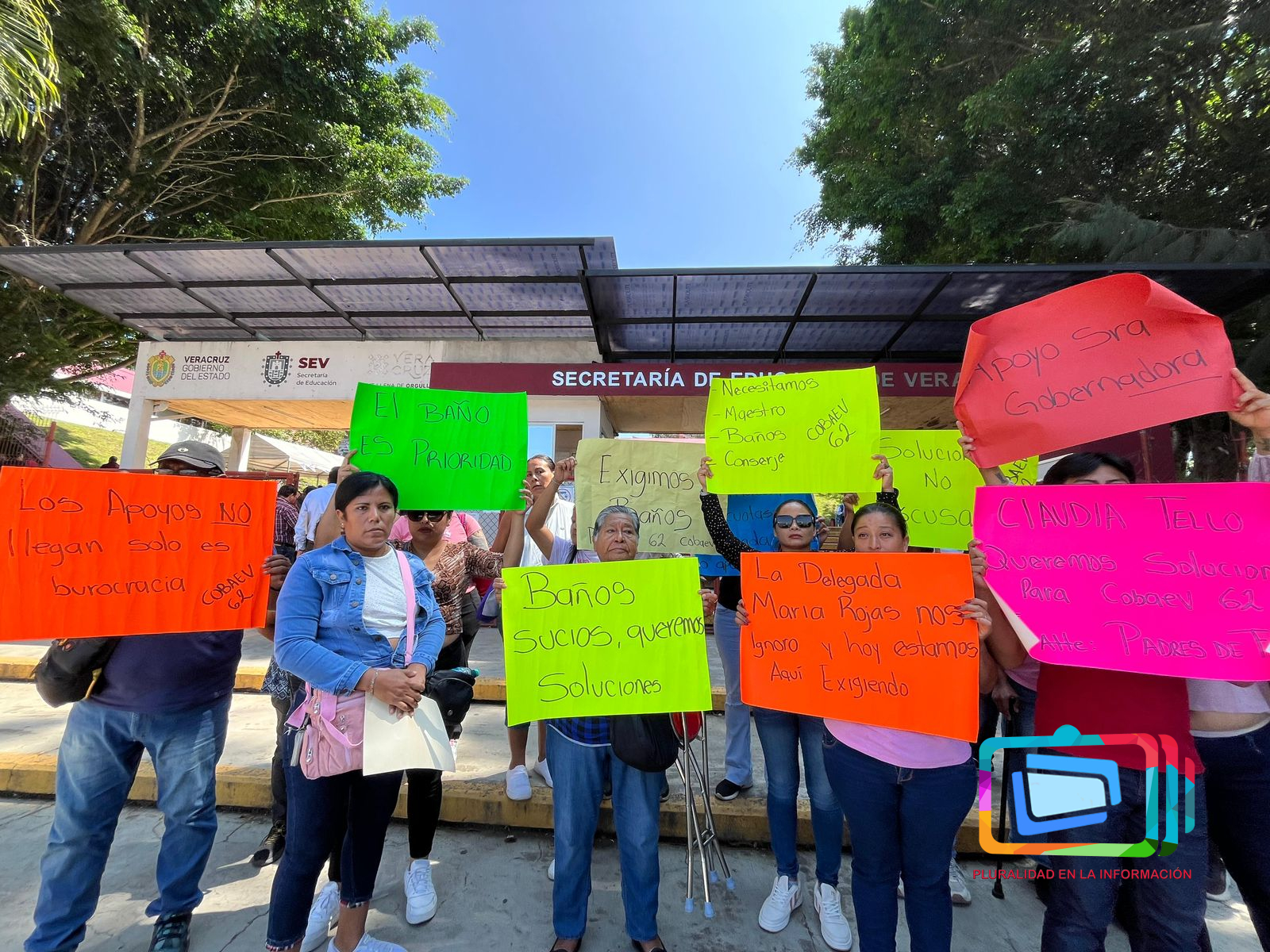 Padres de familia del COBAEV 62 de Veracruz se manifestaron en la SEV