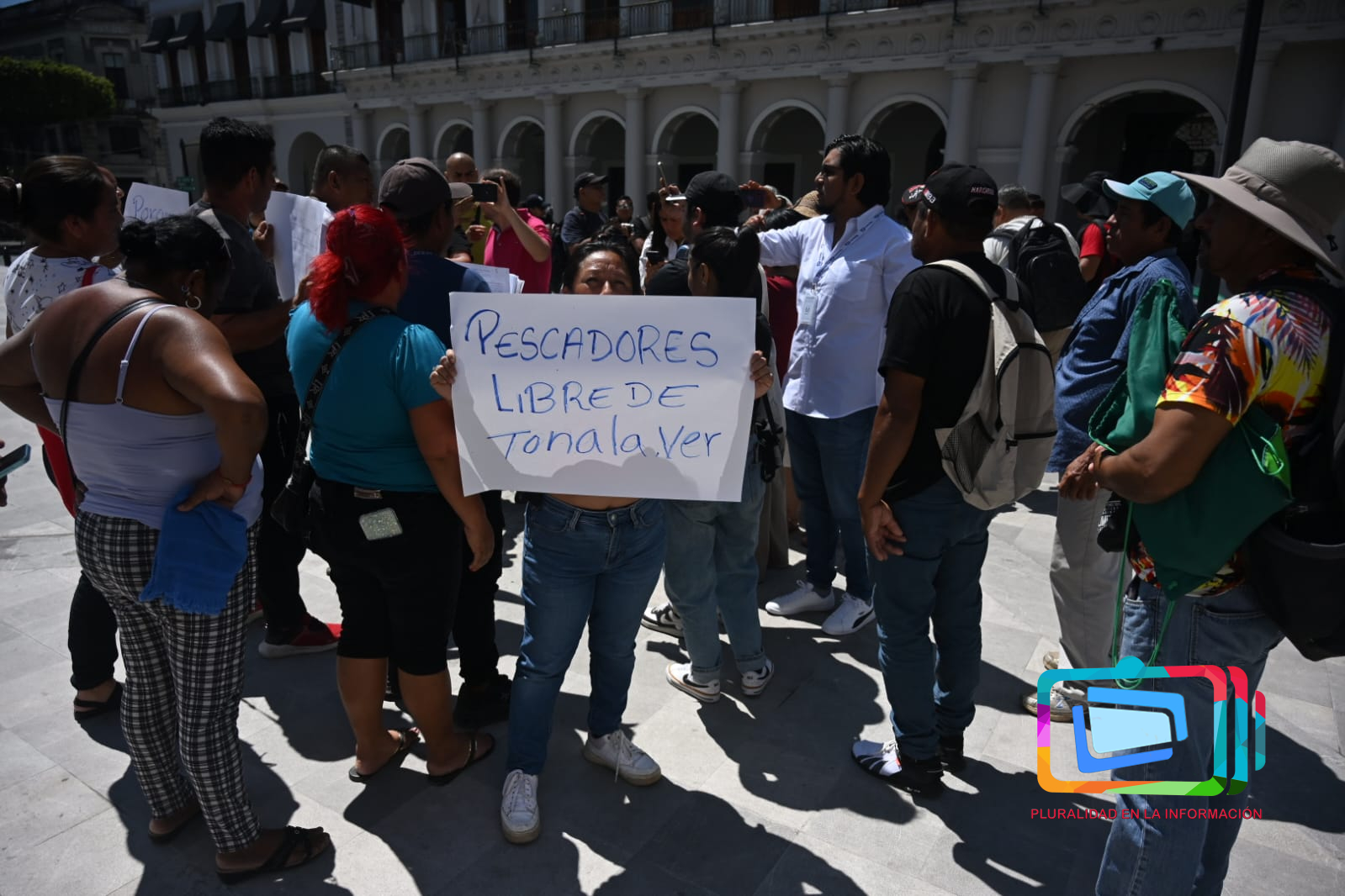 Pescadores de Tonalá protestan en Plaza Lerdo; denuncian contaminación y falta de apoyos.