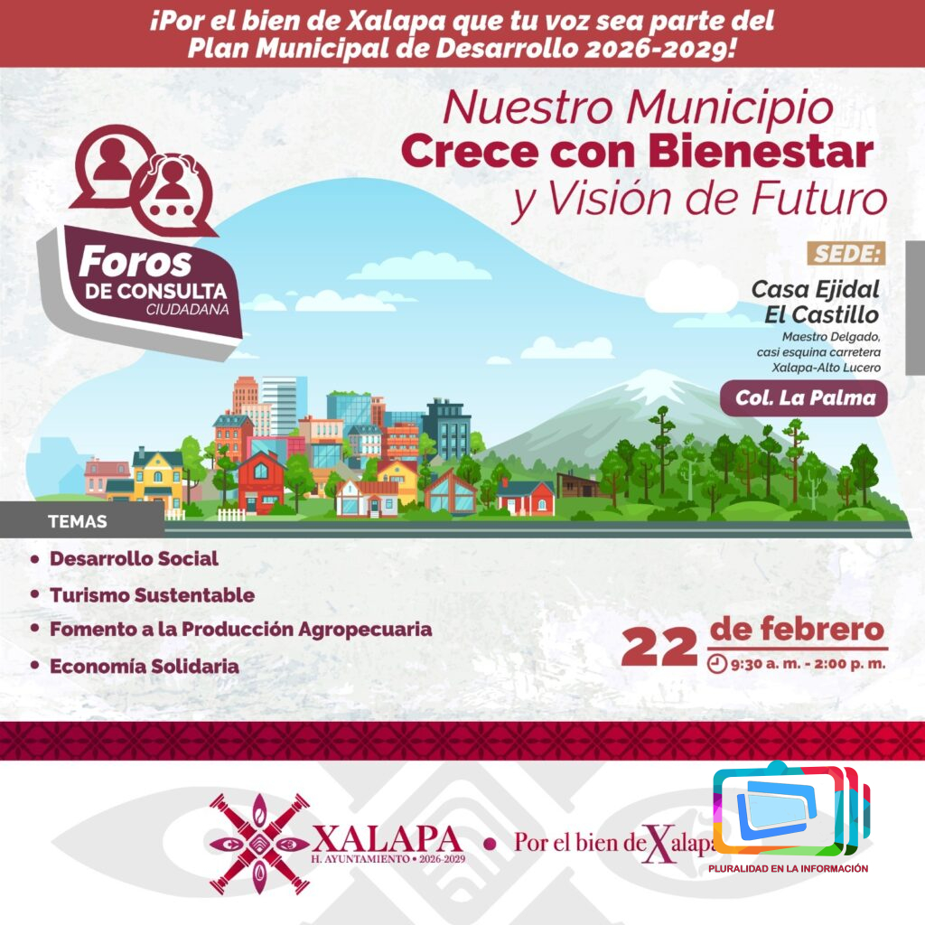 Xalapa, Ver., 3 de febrero de 2026.- Con el propósito de contar con un Plan Municipal de Desarrollo (PMD) que atienda las principales necesidades de la población y considere las propuestas de la sociedad, el próximo sábado 7 de febrero inician los foros de consulta para la elaboración del PMD 2026-2029.