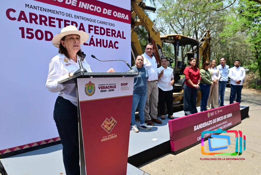 Cuitláhuac, Ver., sábado 25 de abril de 2026.– La gobernadora Rocío Nahle García encabezó el banderazo de inicio de la obra Entronque carretero de la Carretera Federal 150D en Cuitláhuac, donde destacó que su administración trabaja con cercanía al pueblo y con el firme propósito de dignificar a Veracruz.