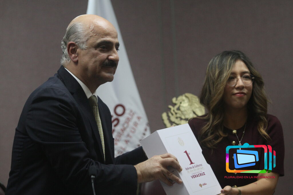 Xalapa, Veracruz a 15 de noviembre de 2025.- El secretario de Gobierno, Ricardo Ahued Bardahuil, entregó este viernes al Congreso del Estado el Primer Informe de Gobierno de la mandataria veracruzana Rocío Nahle García, cumpliendo con lo establecido en el artículo 49 de la Constitución Política del Estado.