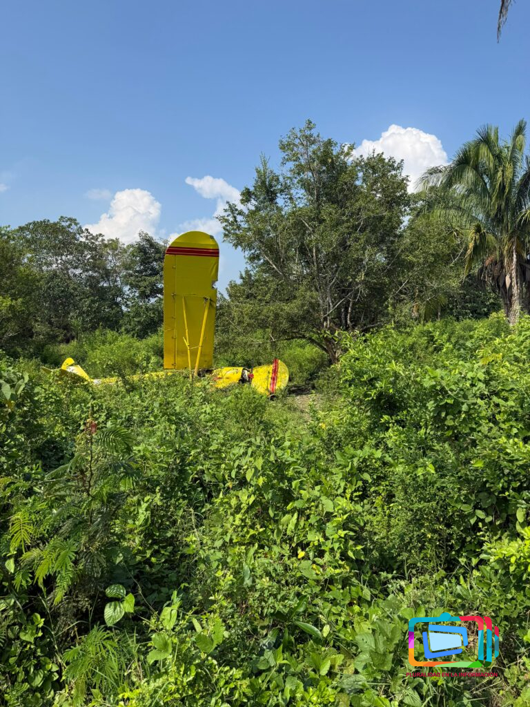 Chacaltianguis, Veracruz a 1 de diciembre de 2025.- Una avioneta amarilla utilizada para labores de fumigación del ingenio San Cristóbal se desplomó la mañana de este lunes 1 de diciembre en la comunidad de Torno Largo, municipio de Chacaltianguis.
