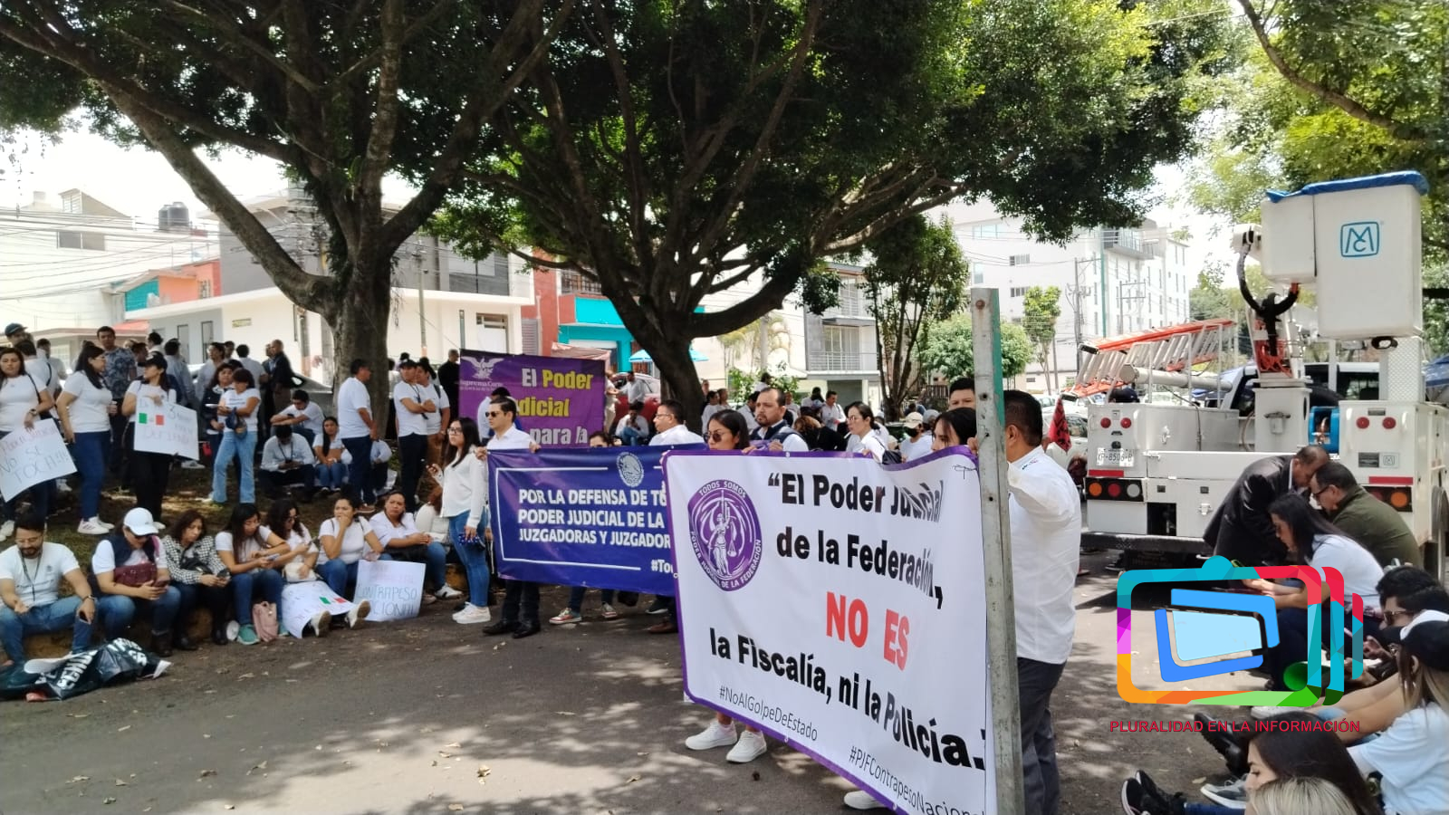 Con gritos de consignas en contra de la Reforma al Poder Judicial federal los trabajadores se manifestaron en contra de esta misma, ya que en el interior de realizaban los diálogos nacionales.