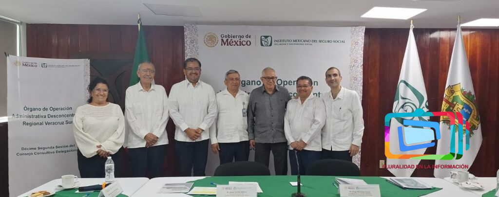 Coatzacoalcos, Veracruz, 20 de junio de 2025.- El Honorable Consejo Consultivo de la representación del Instituto Mexicano del Seguro Social (IMSS) en Veracruz Sur, realizó su décima segunda sesión ordinaria, en la que el titular en la entidad y presidente del órgano colegiado, doctor Jorge Martínez Torres, recibió la visita del secretario general, doctor Jorge Gaviño Ambriz.